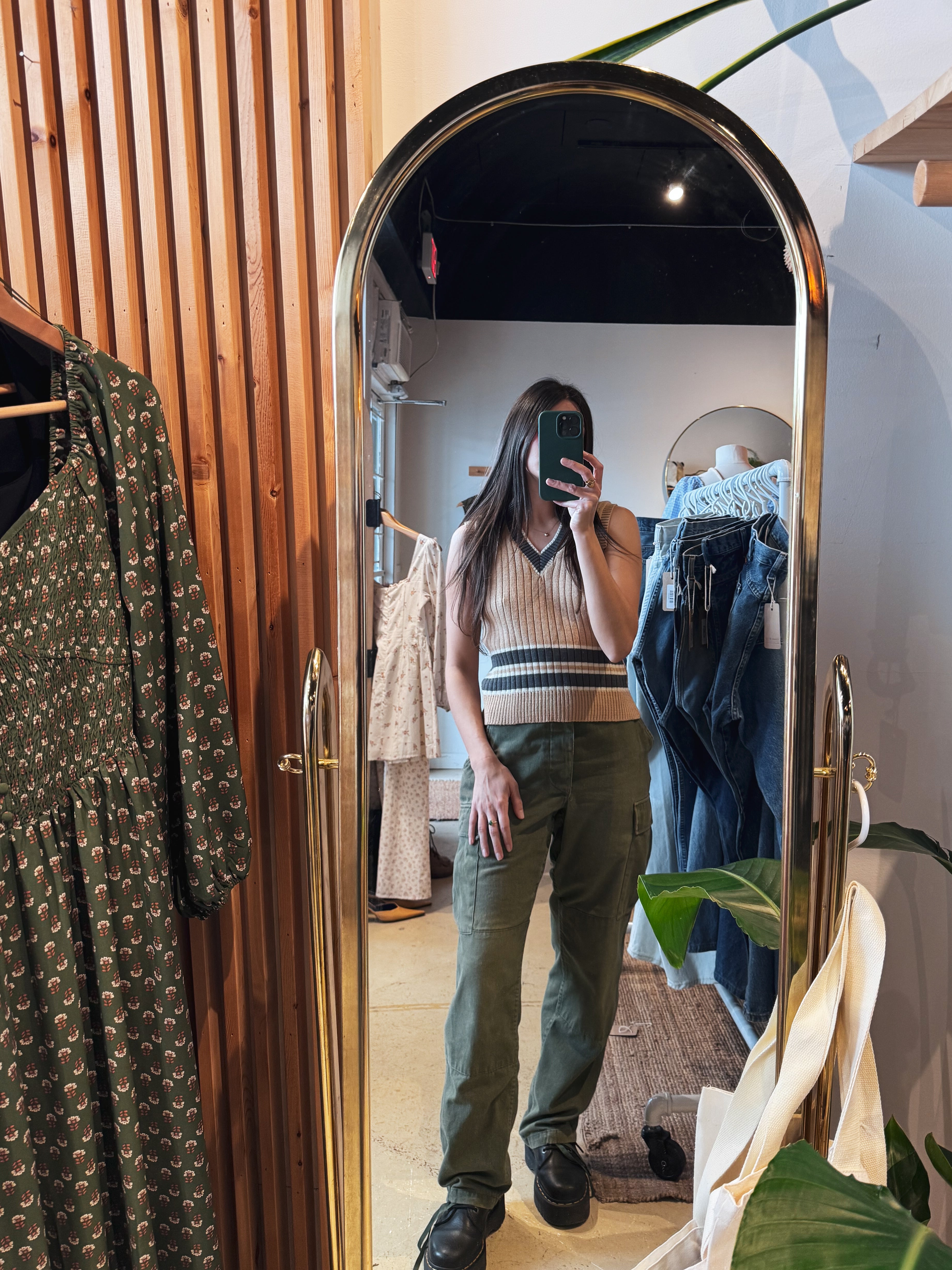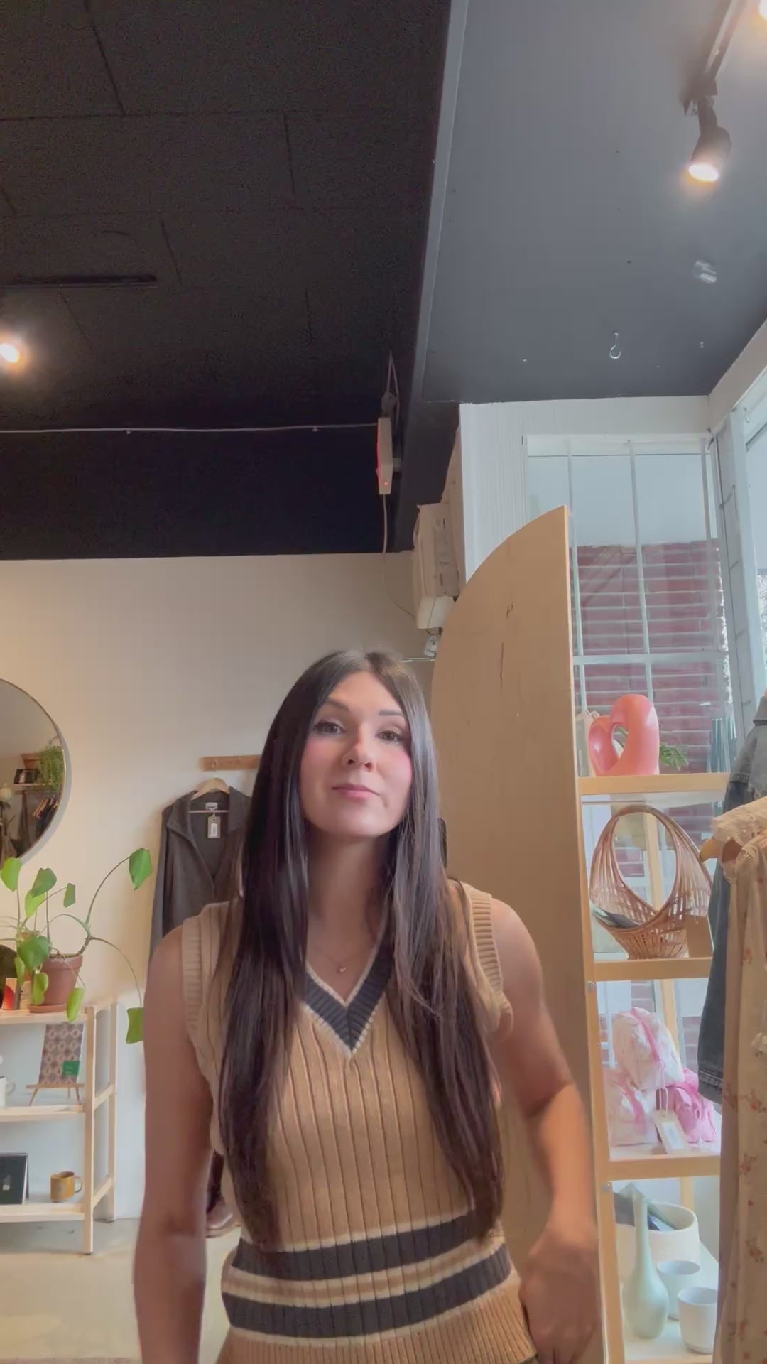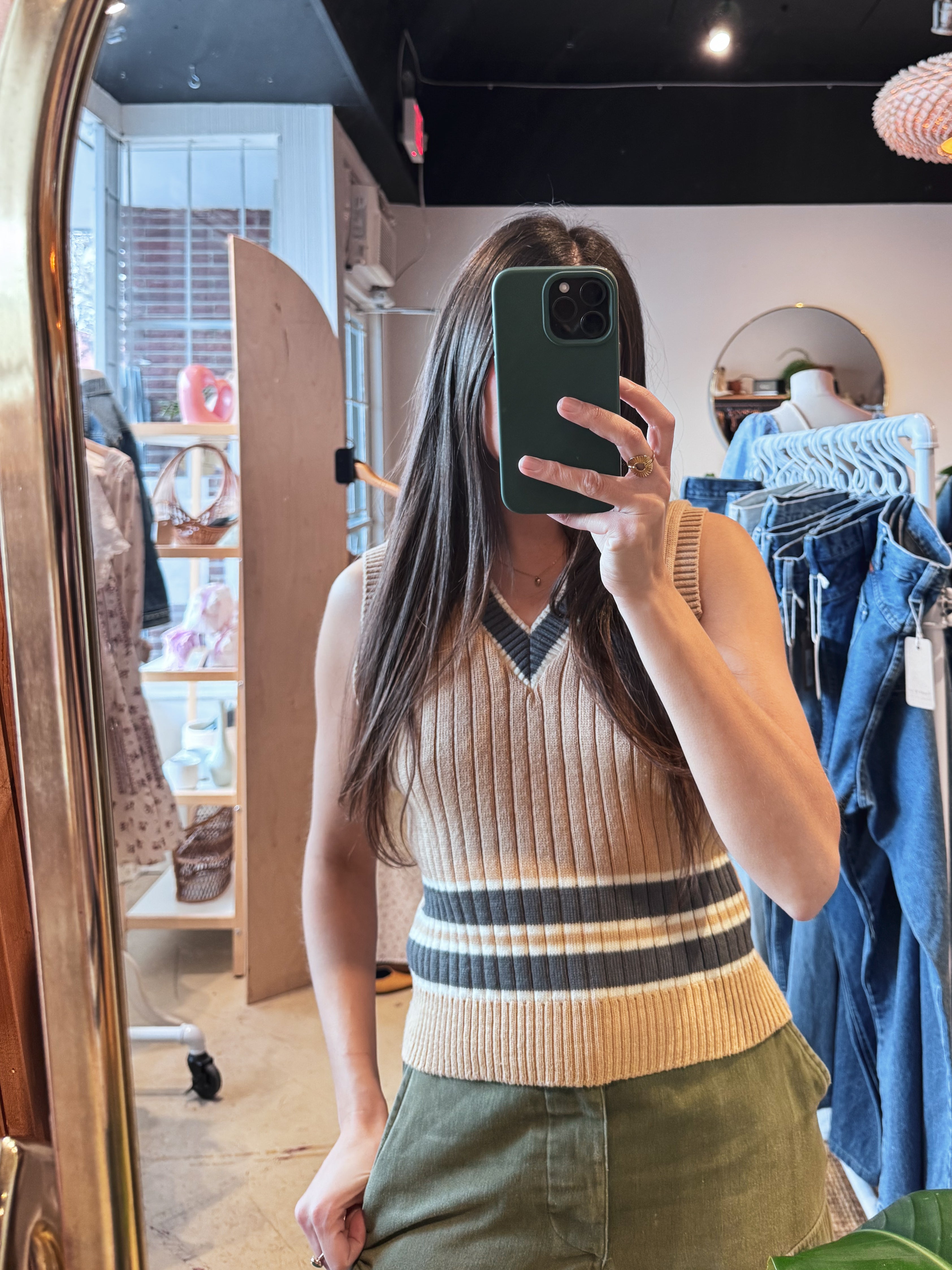 vintage beige grey fitted knit vest | S
