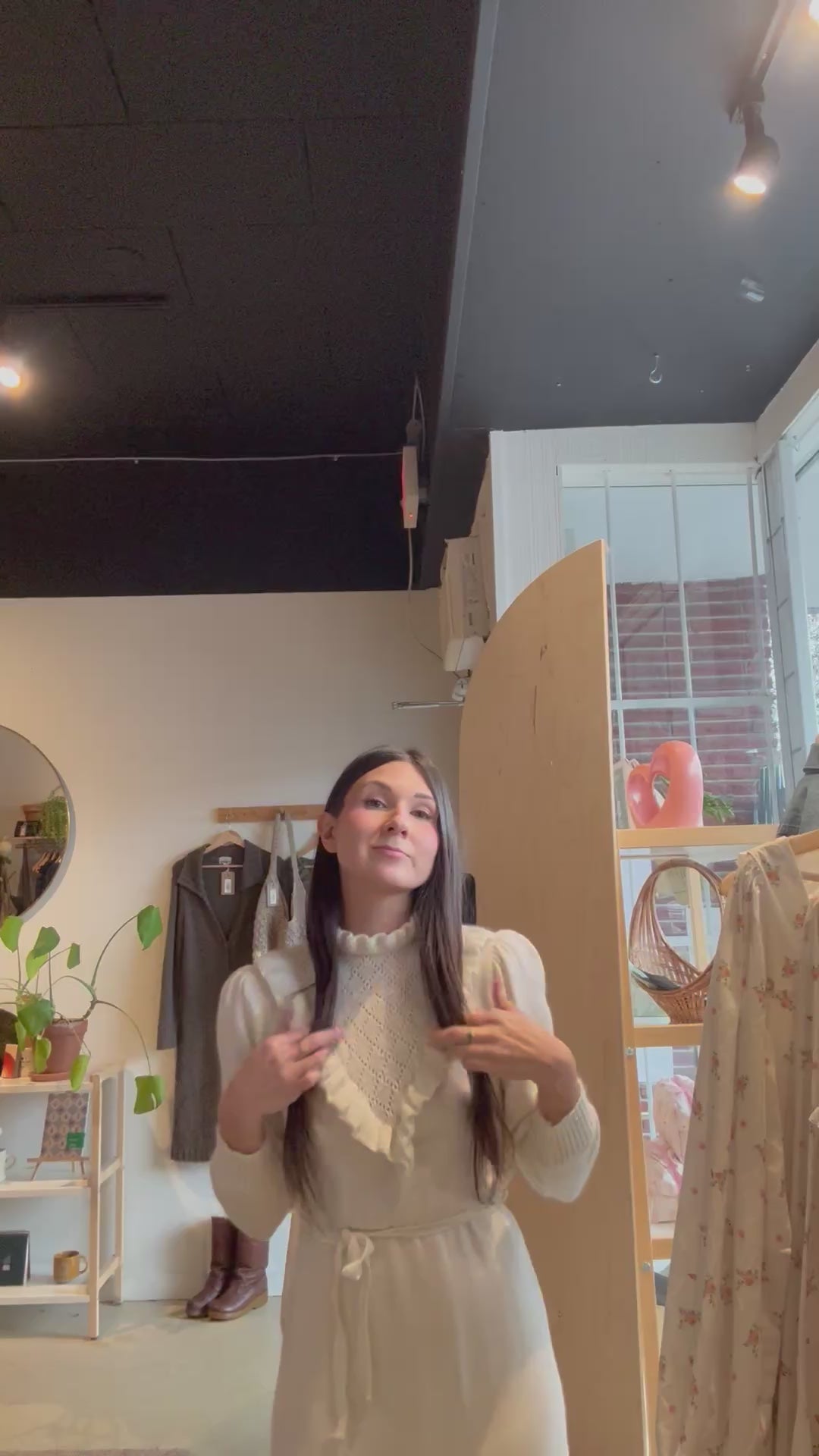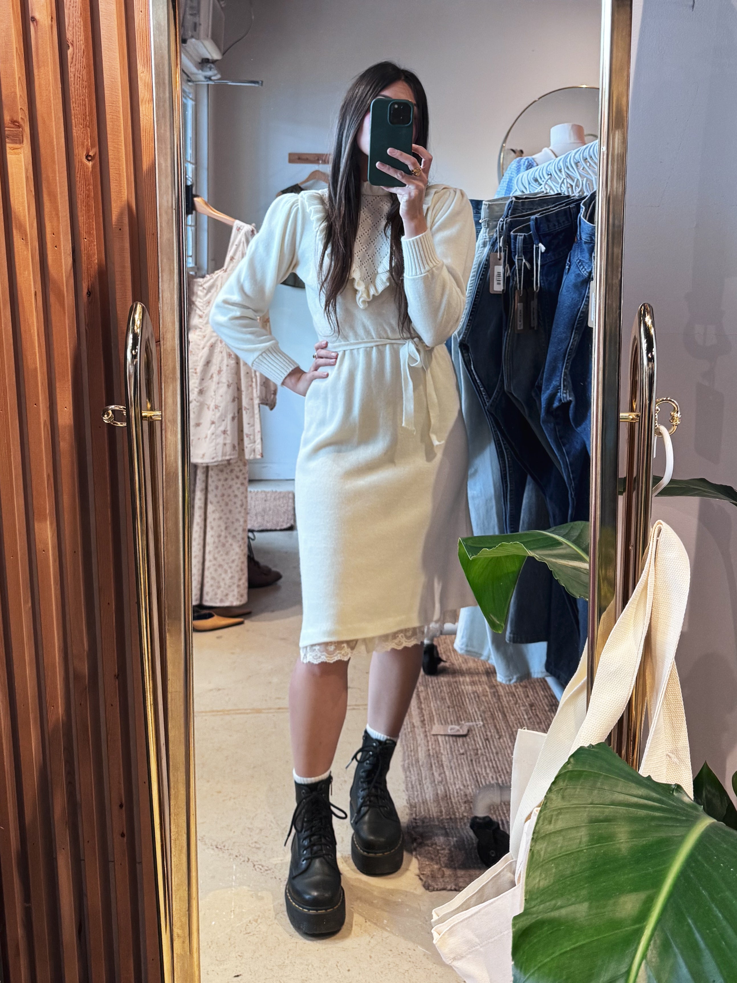 vintage cream high neck knit dress w/tie | S