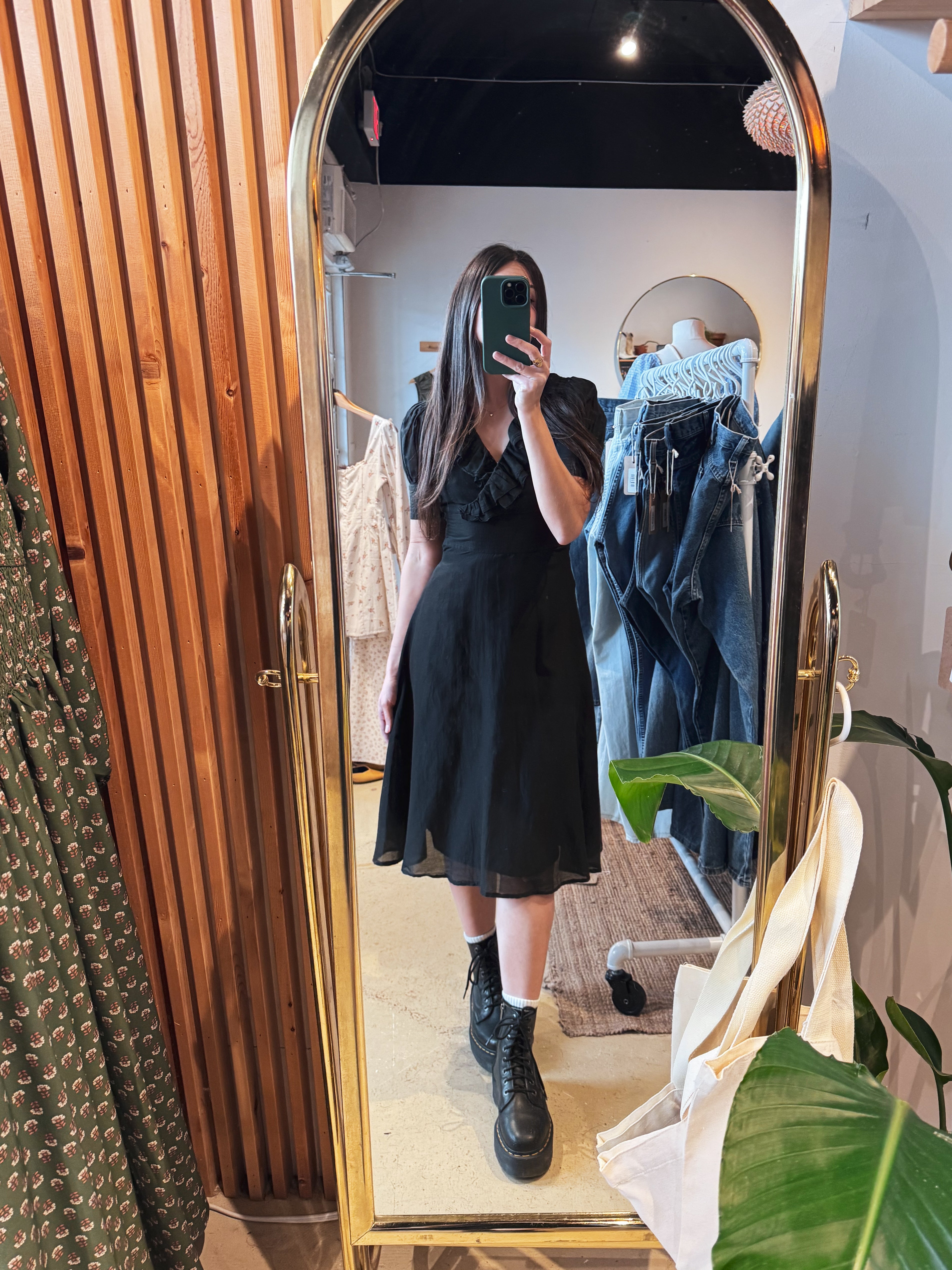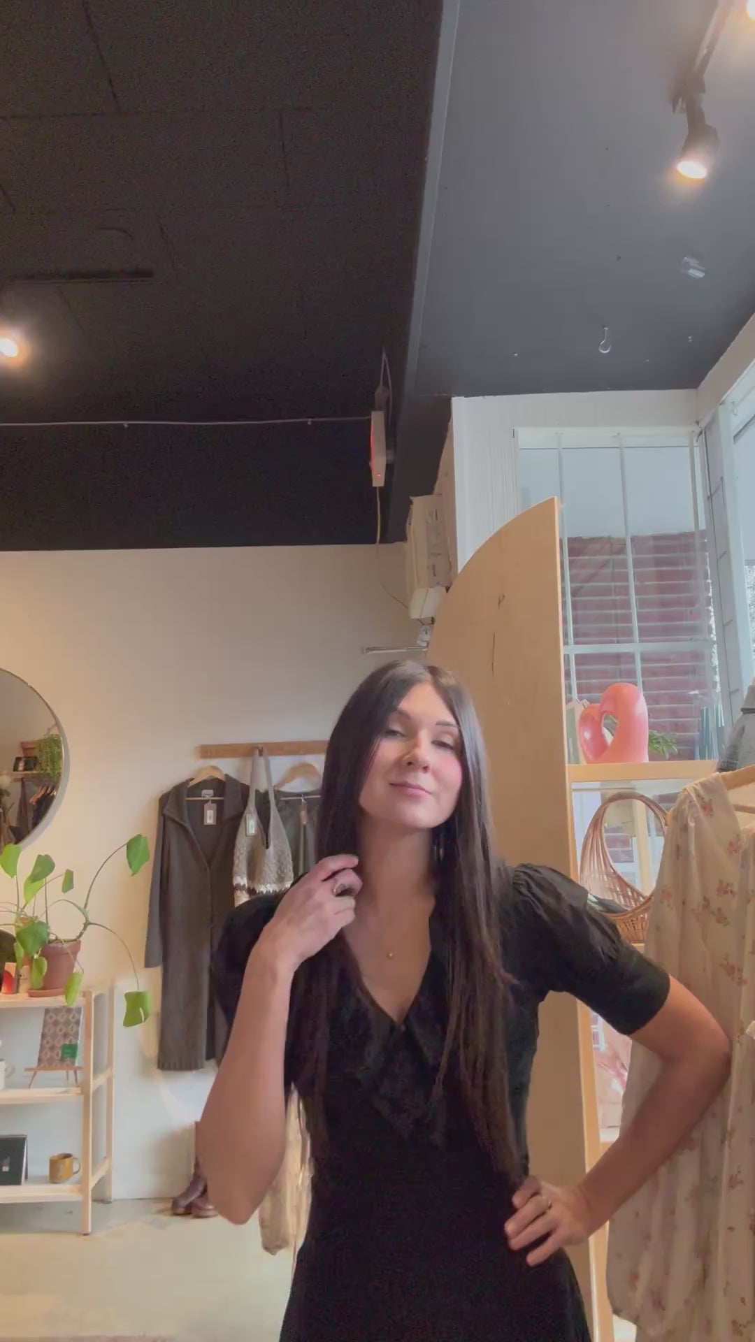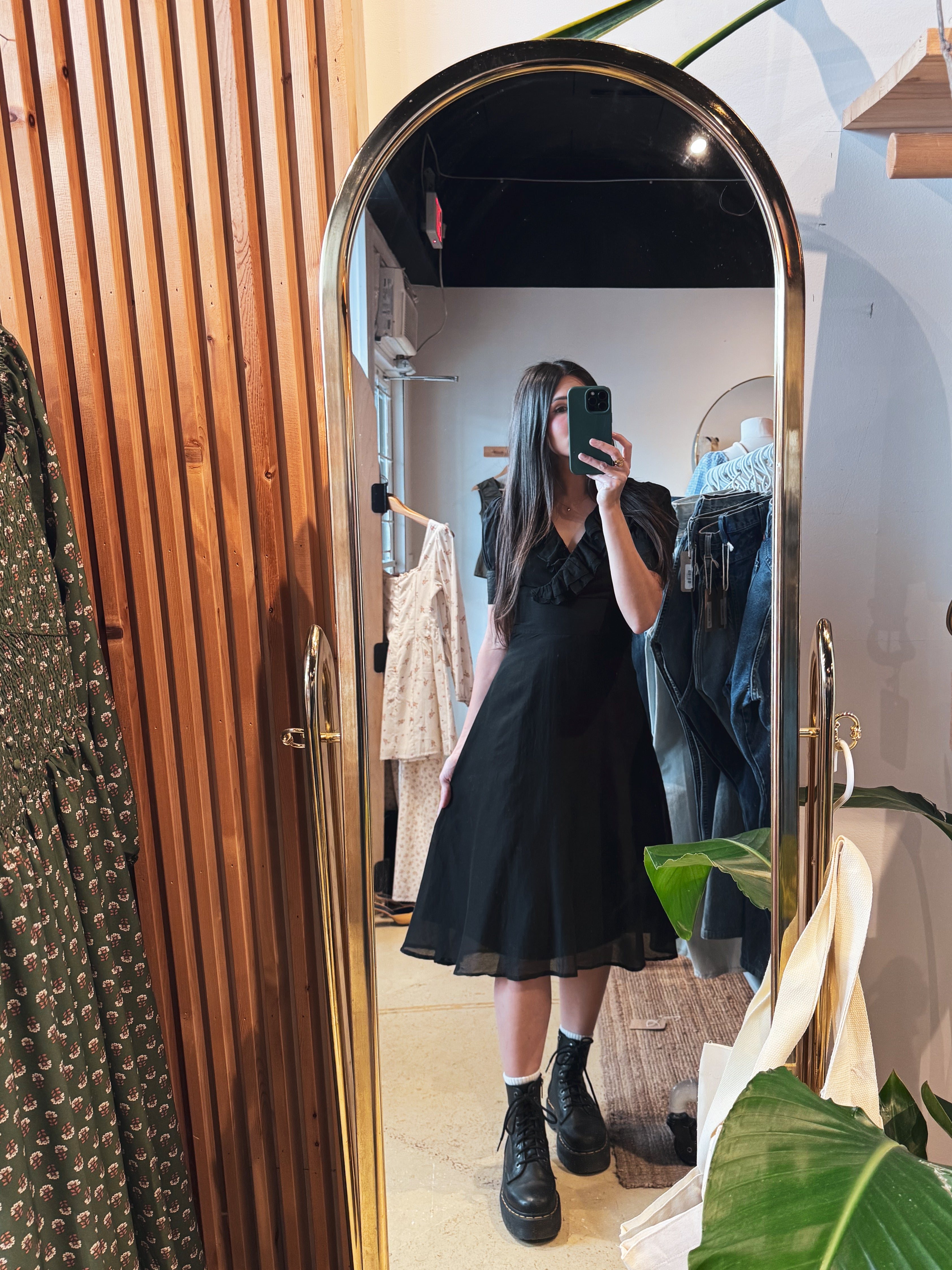 vintage y2k black ruffle collar cotton dress | S