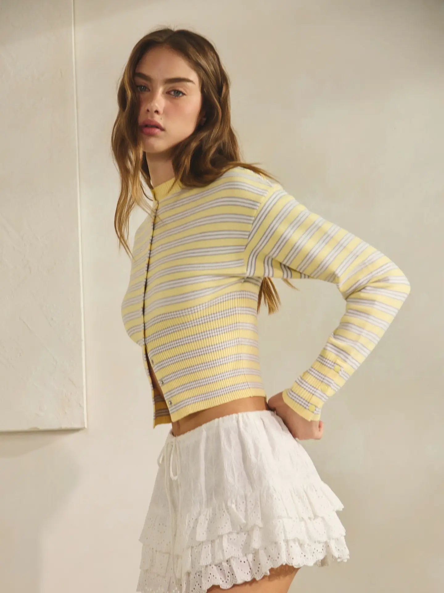 Perfect for styling with cropped knits or casual tops for warm weather looks.