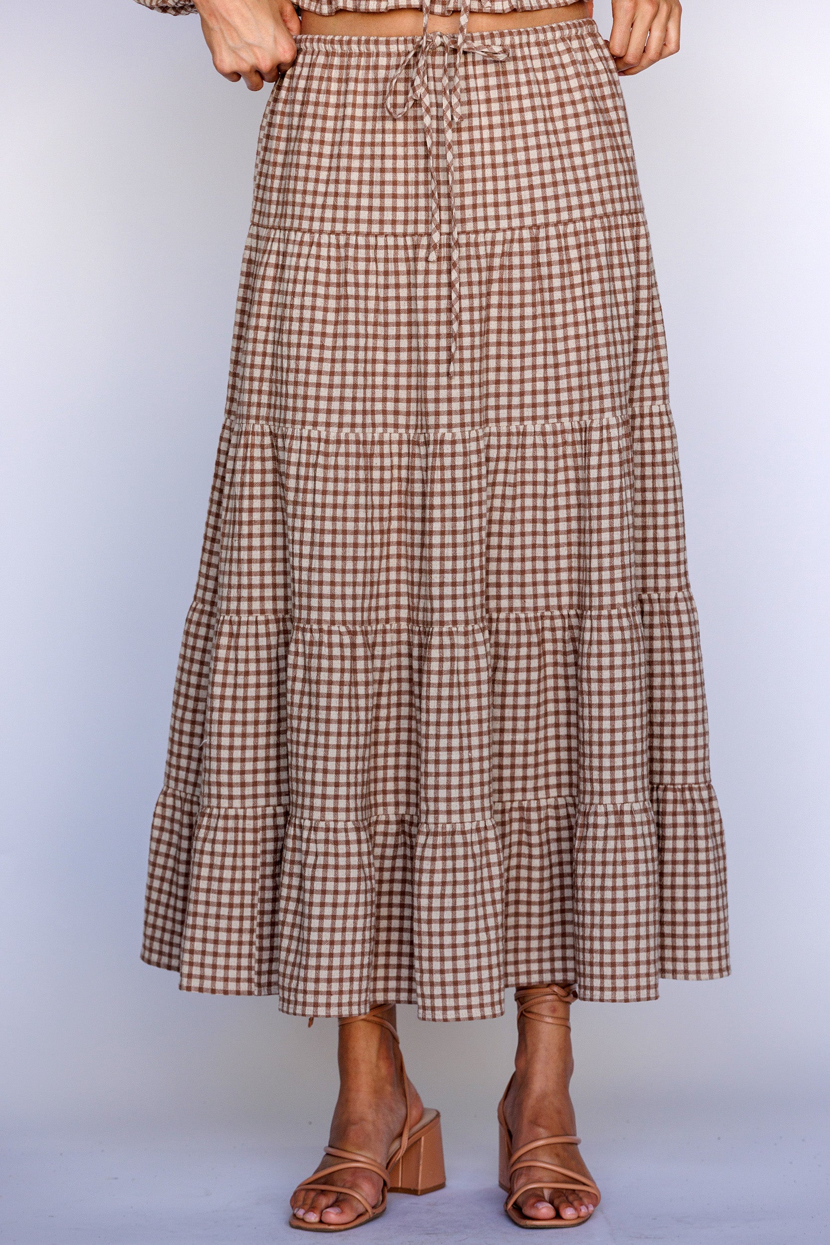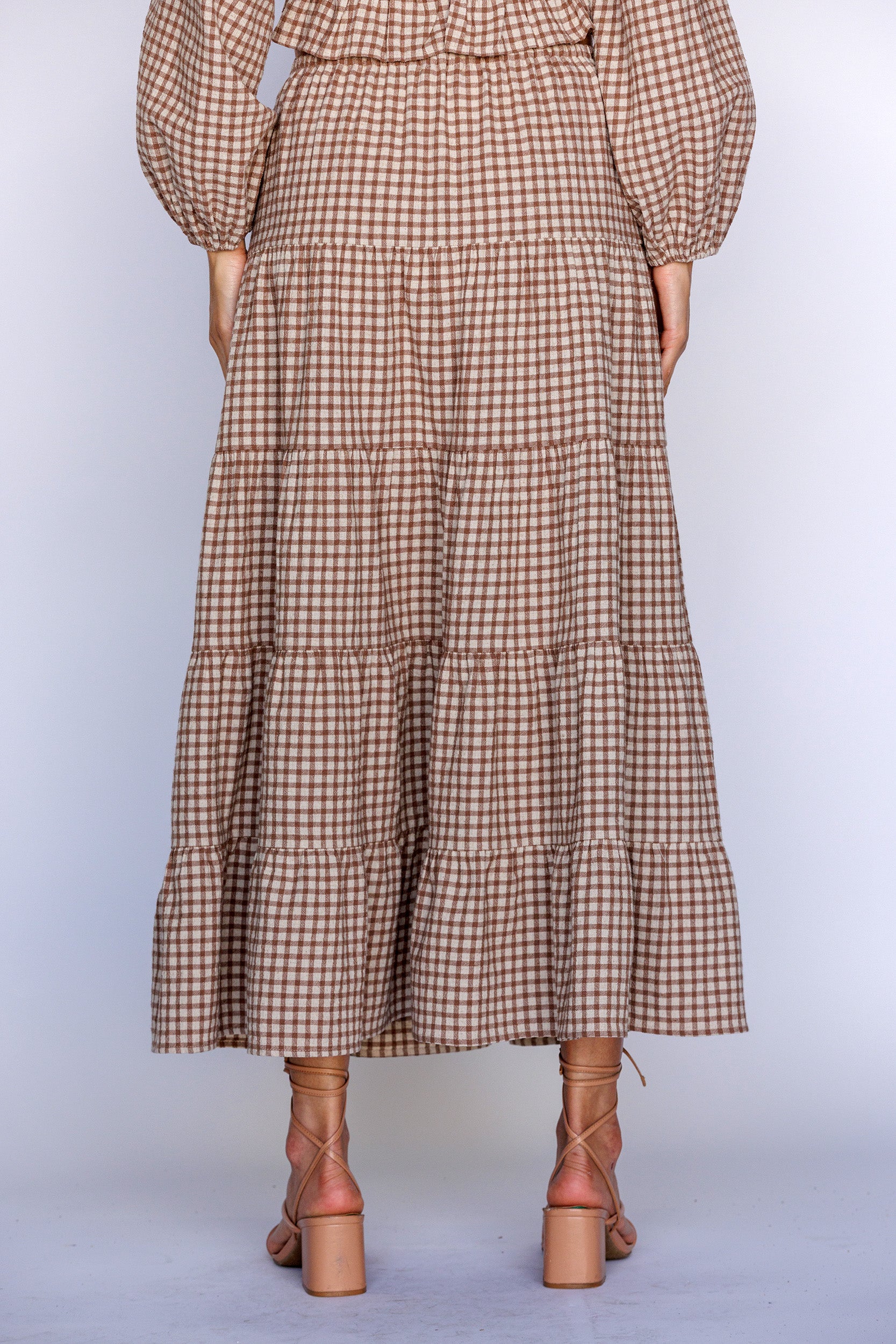 gingham maxi tiered skirt