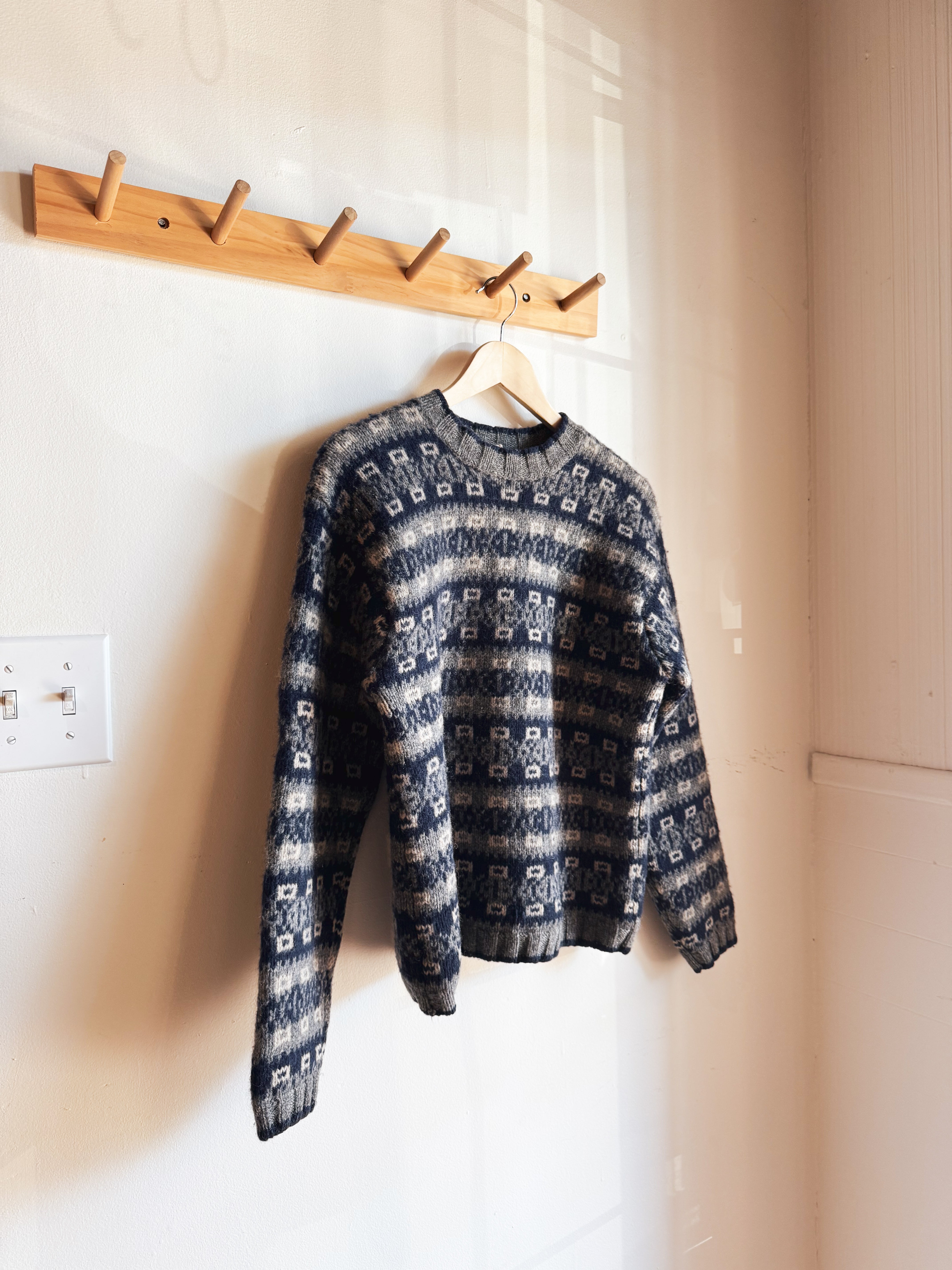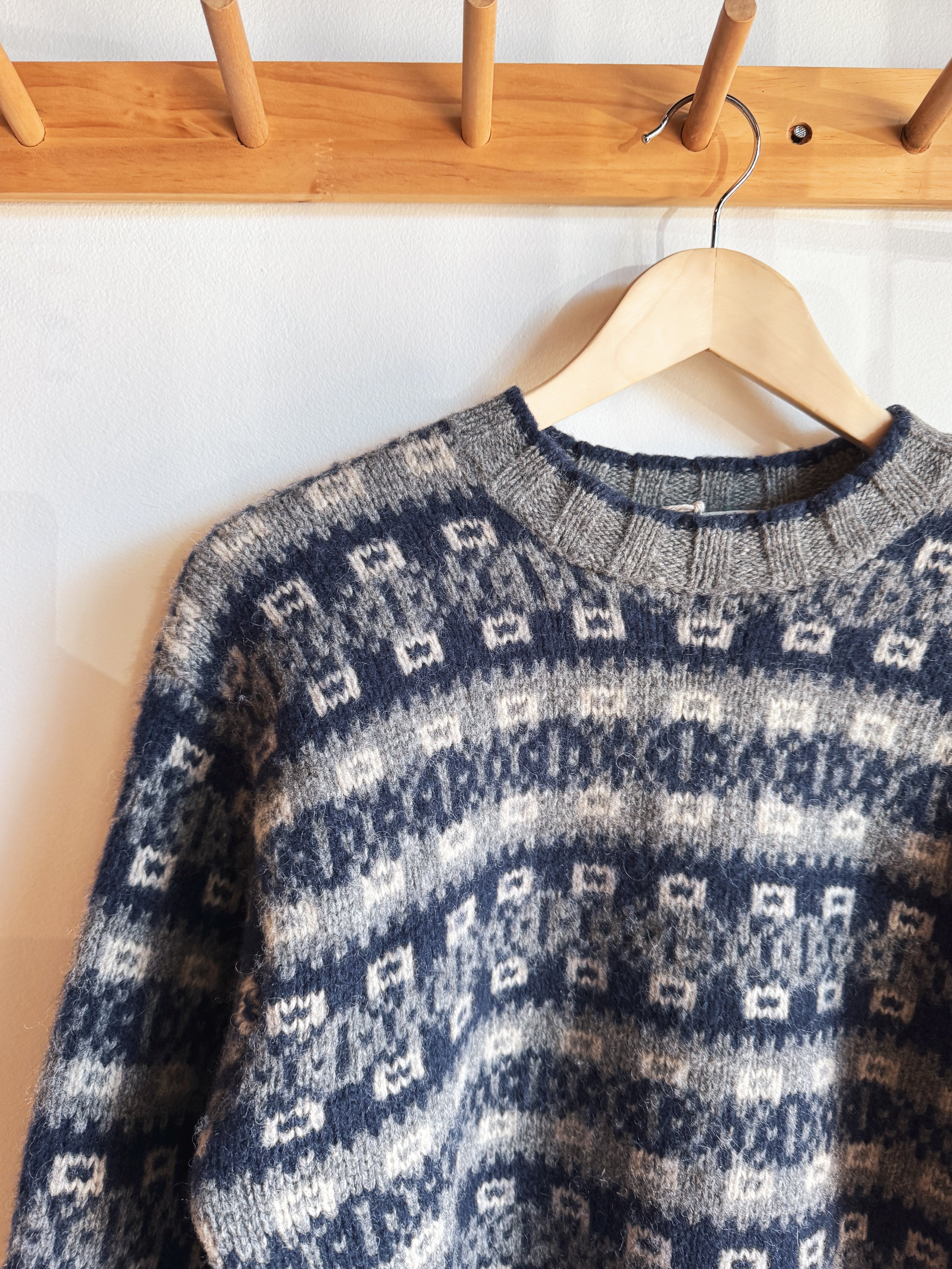 vintage grey navy patterned wool sweater | S/M
