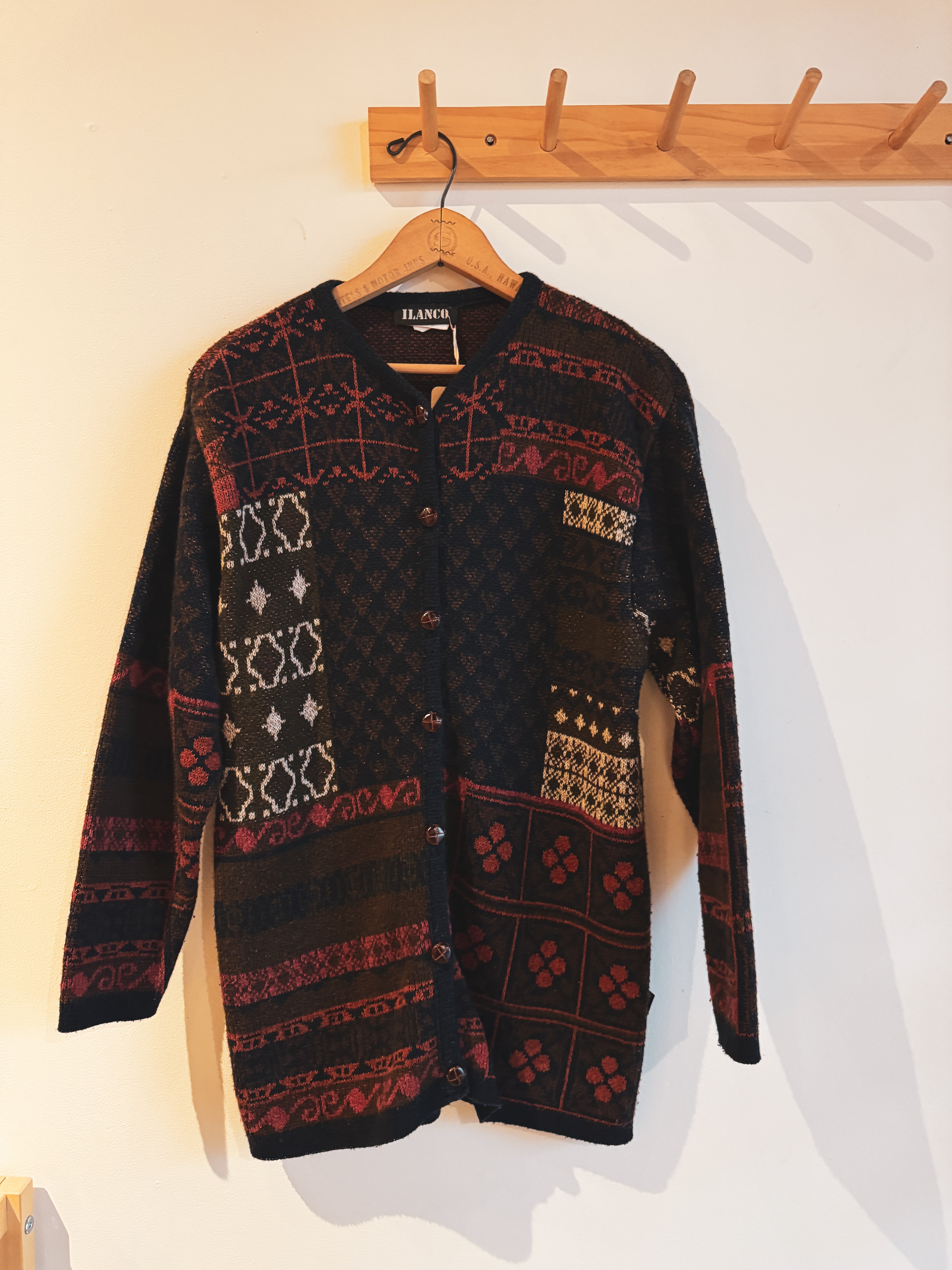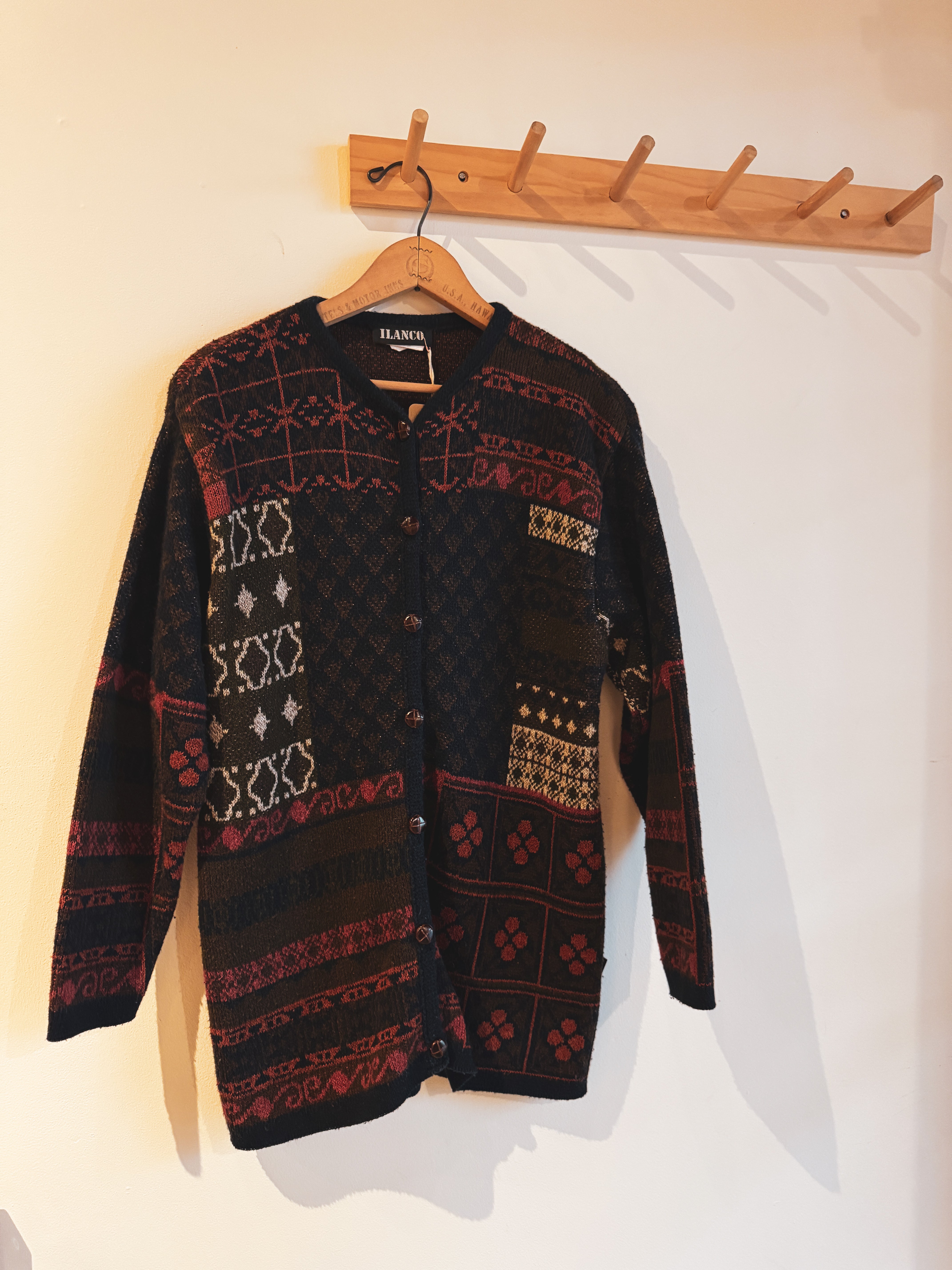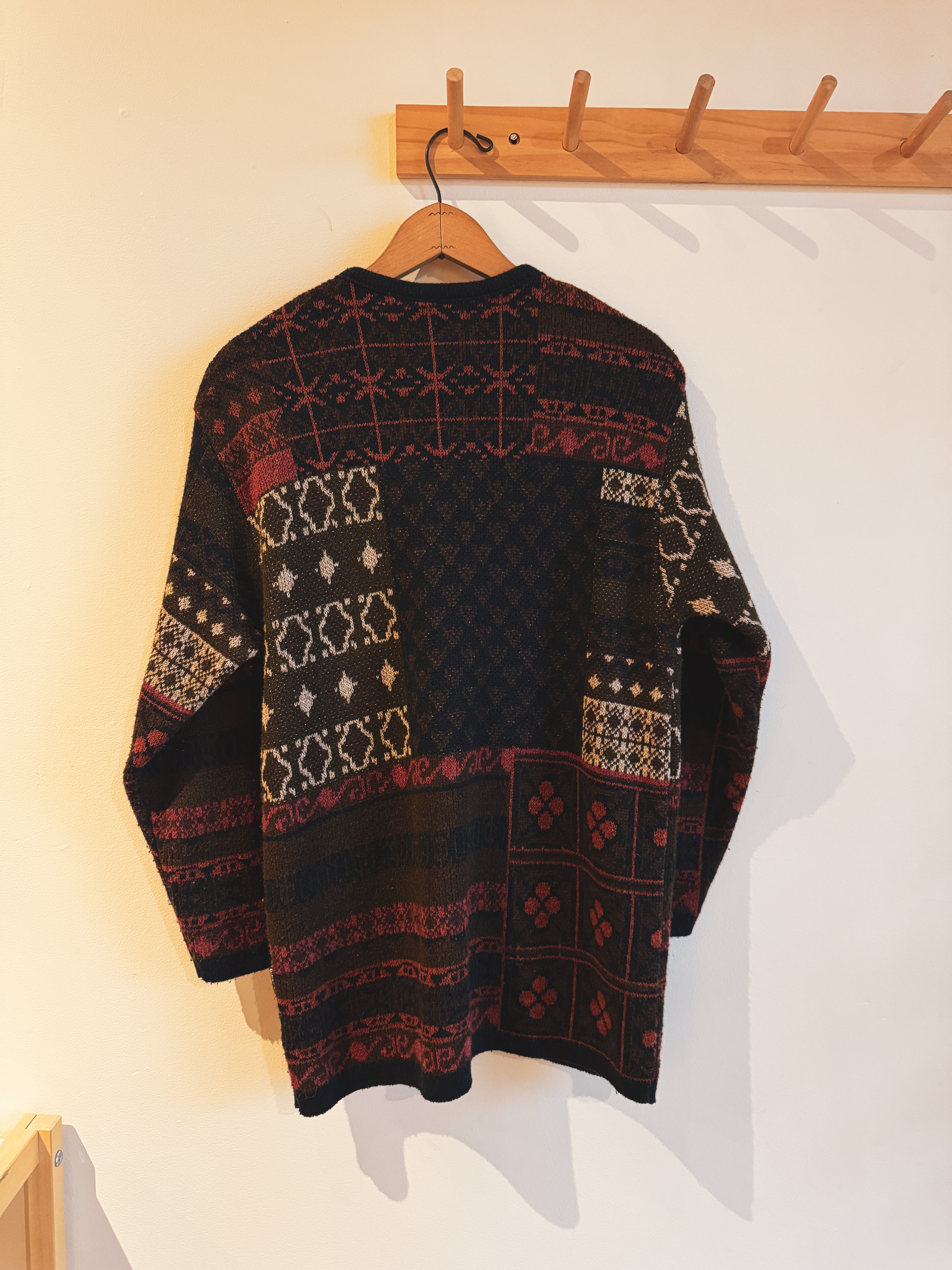 vintage navy red olive patterned cardigan | M