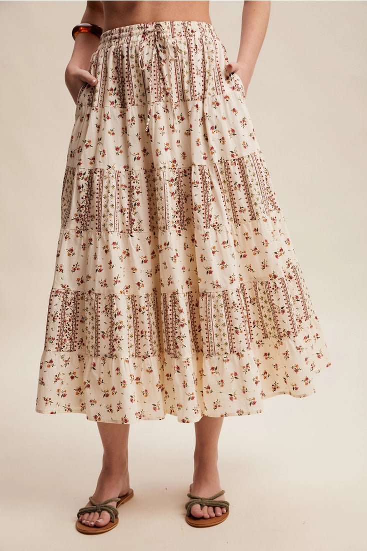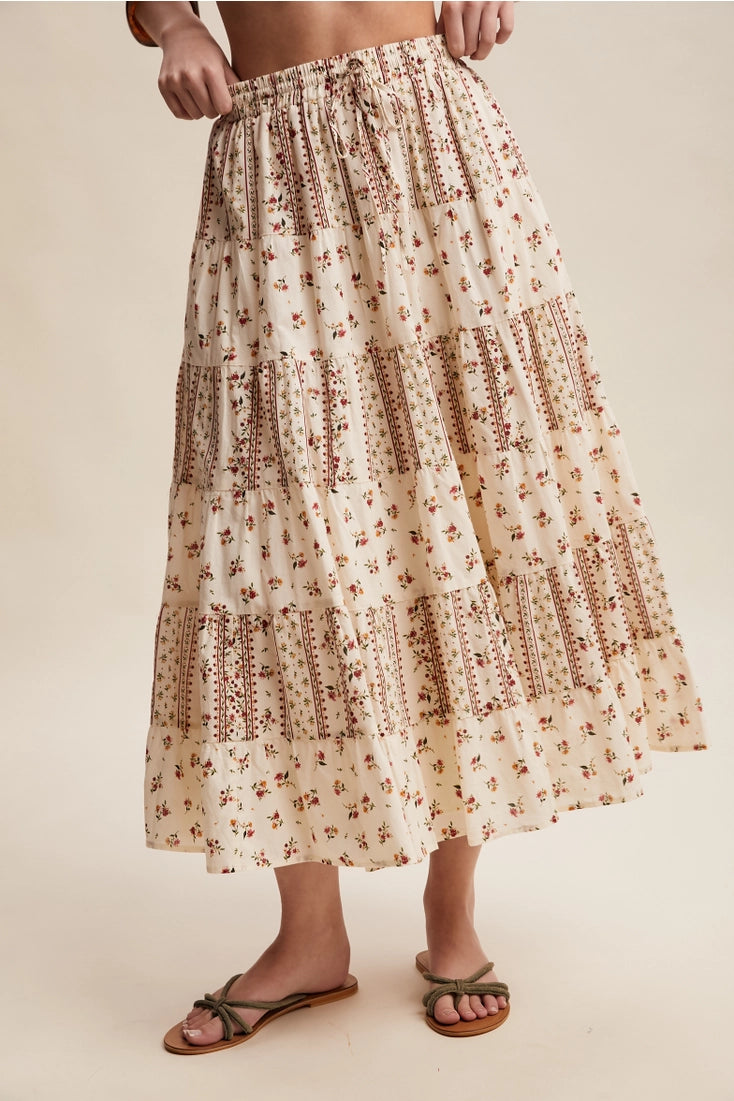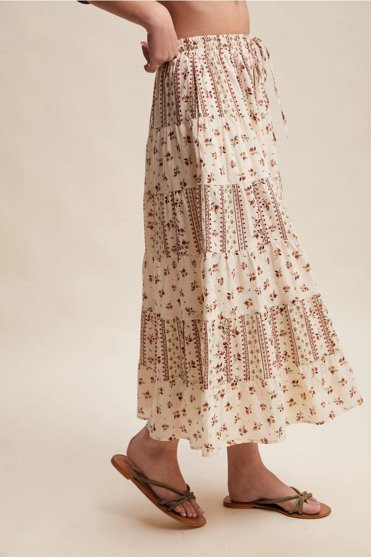 floral & printed tiered maxi skirt