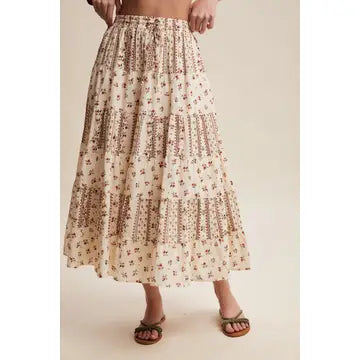 Soft, feminine, and naturally boho, this mixed-print tiered skirt brings easy movement and effortless charm to warm-weather outfits-perfect for styling with breathable summer tops, relaxed Western-inspired looks, or coordinating sets that feel breezy, timeless, and beautifully wearable.