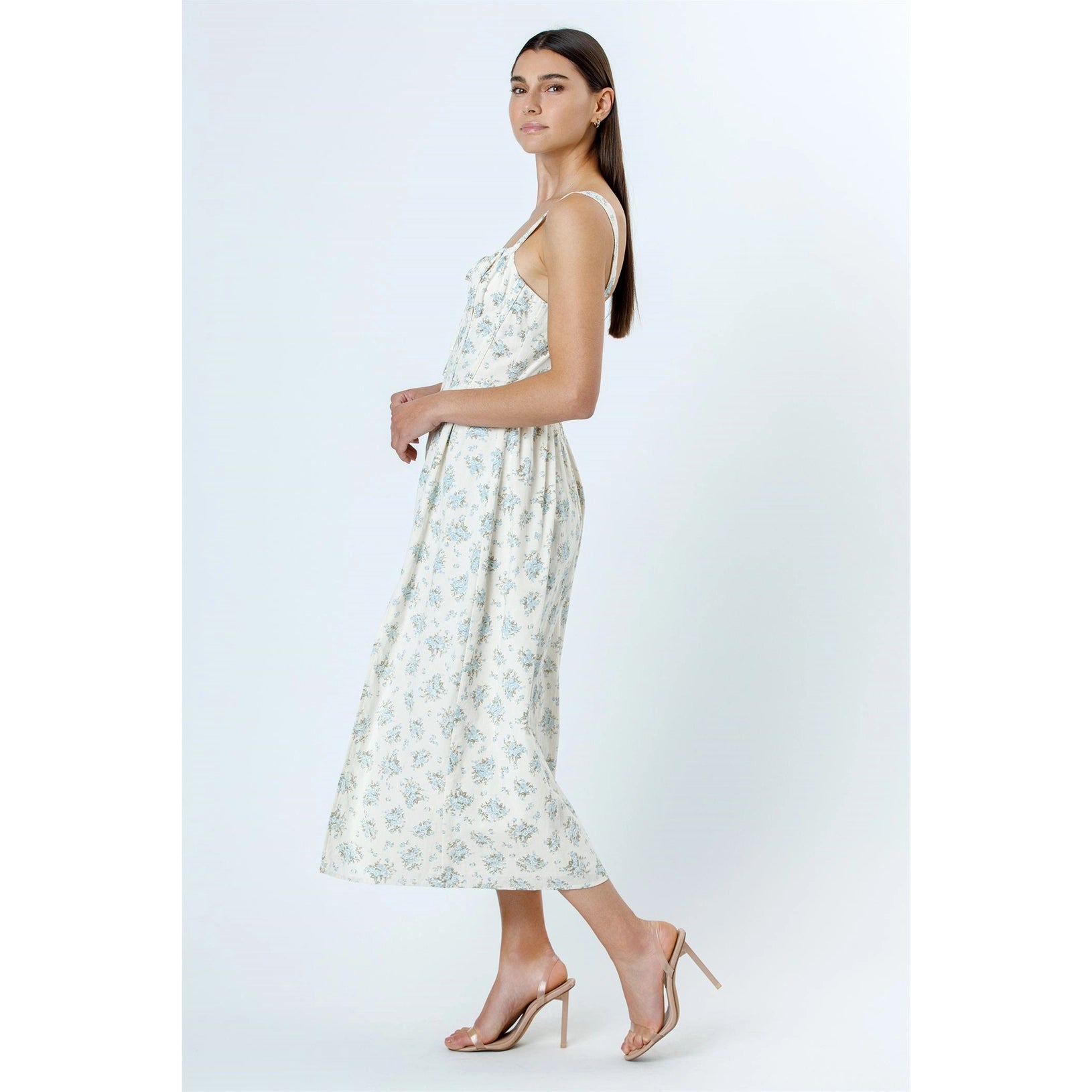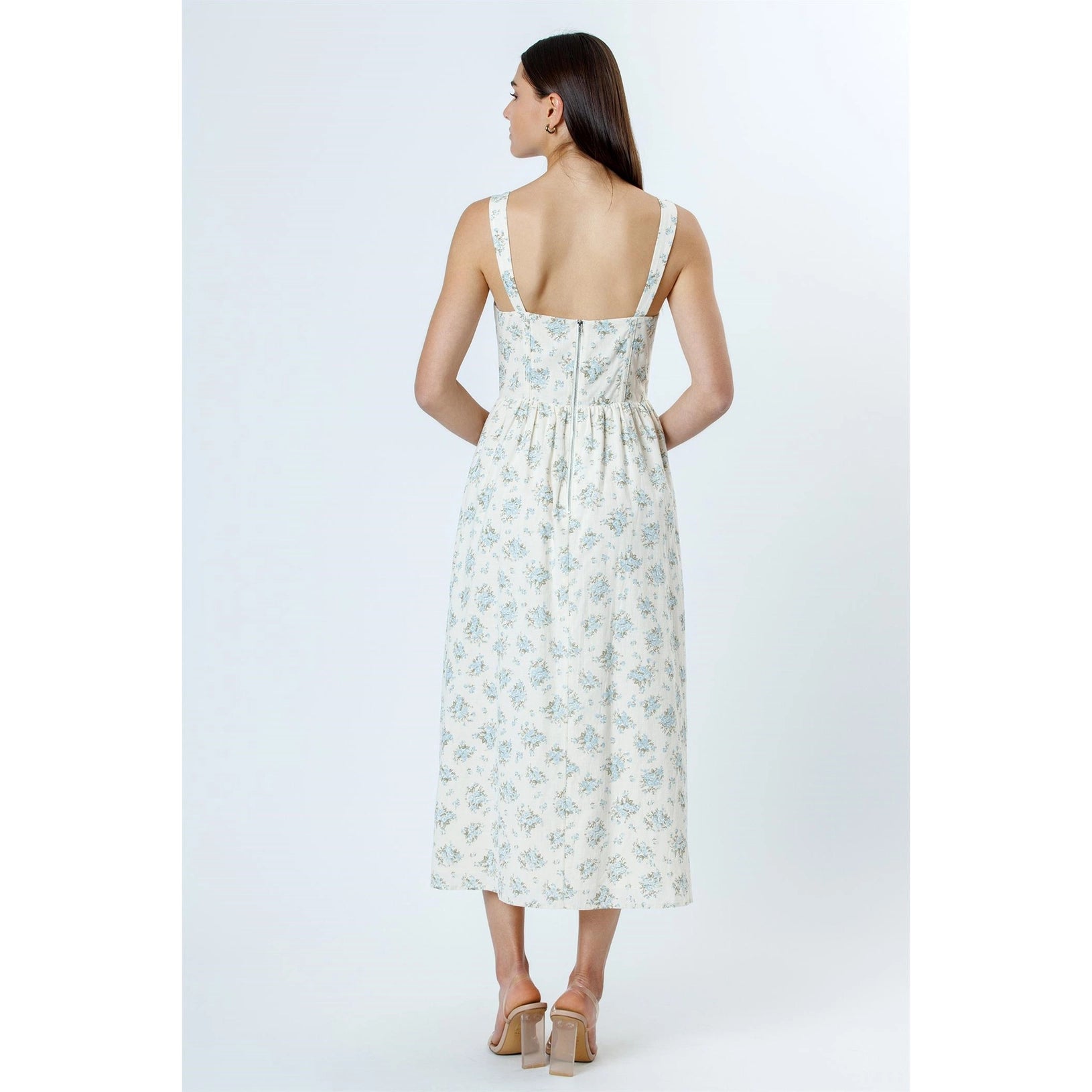 ivory blue floral midi dress