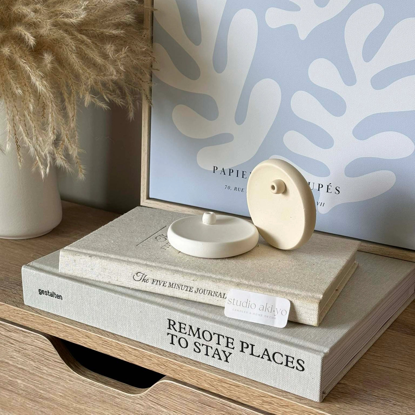 minimalist incense stick holder in light beige by Studio Akiyo