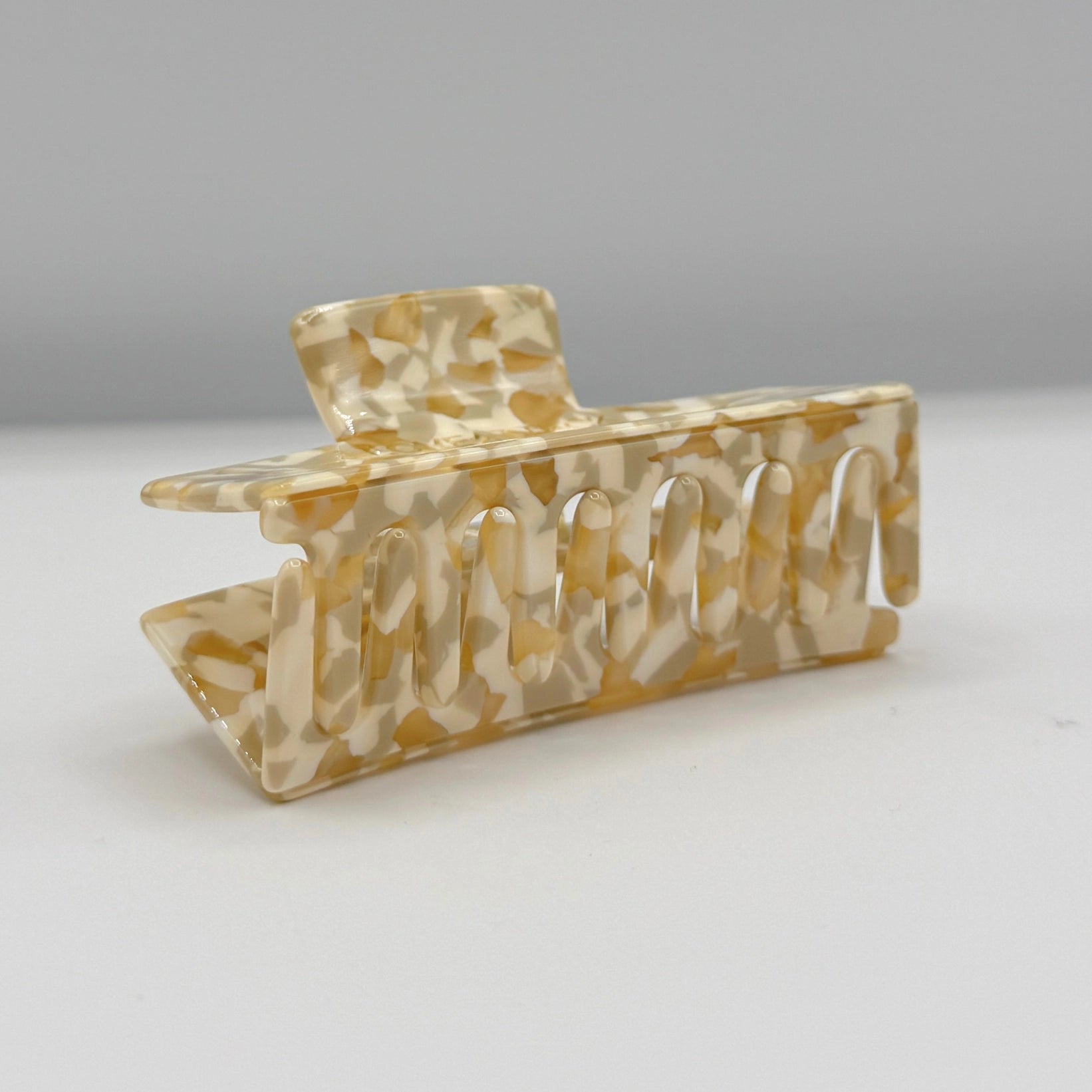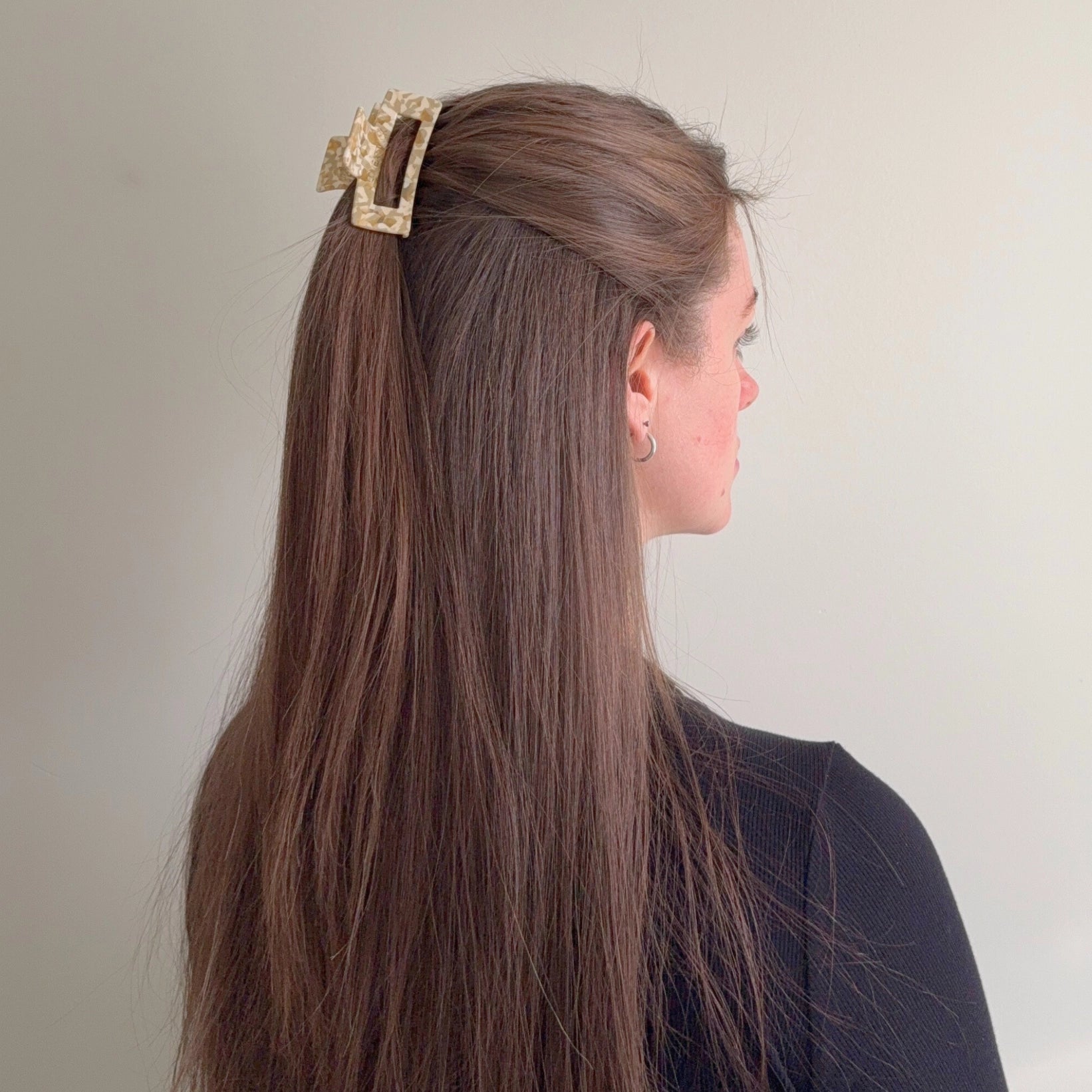the Sara Claw Clip—your go-to compact hair claw for effortless everyday styling. Designed to suit multiple hair types, this versatile clip offers a secure yet lightweight hold, making it perfect for fine, medium, or shorter hair. It keeps your hairstyle in place all day without pulling or slipping, making it an essential for both casual and polished looks. Crafted from high-quality cellulose acetate, a durable and degradable plant-based material, the Sara Claw Clip is strong, long-lasting, and recyclable at the end of its life.