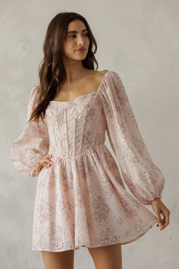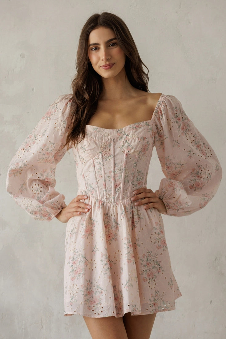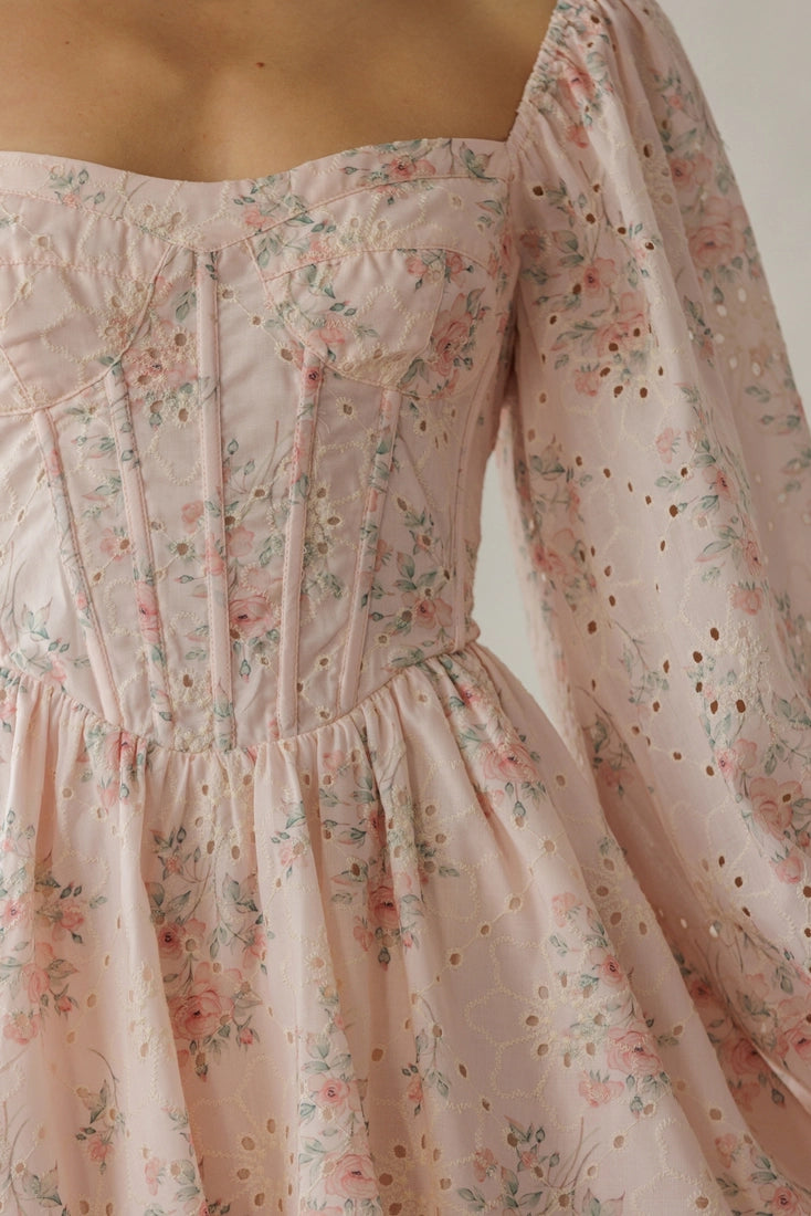 • Fit and flare mini dress with structured corset bodice and voluminous skirt