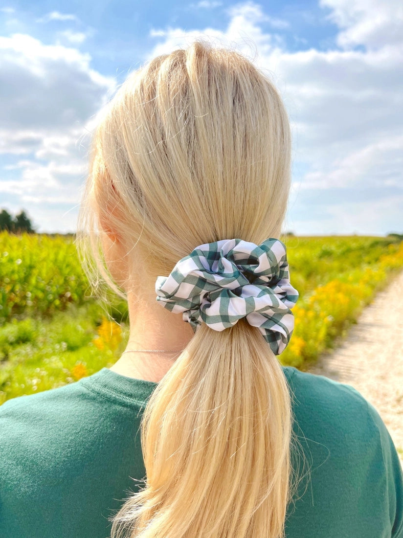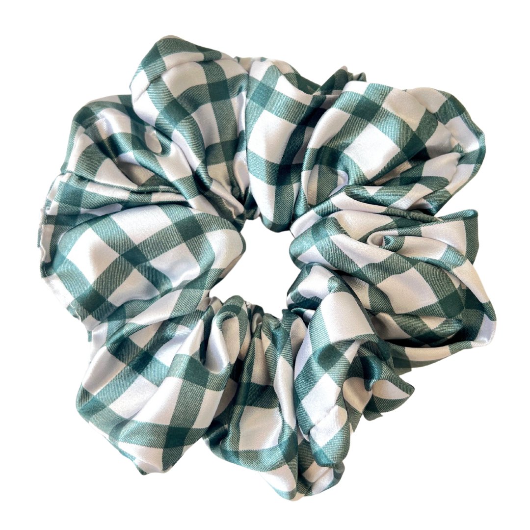 green gingham mulberry silk scrunchie