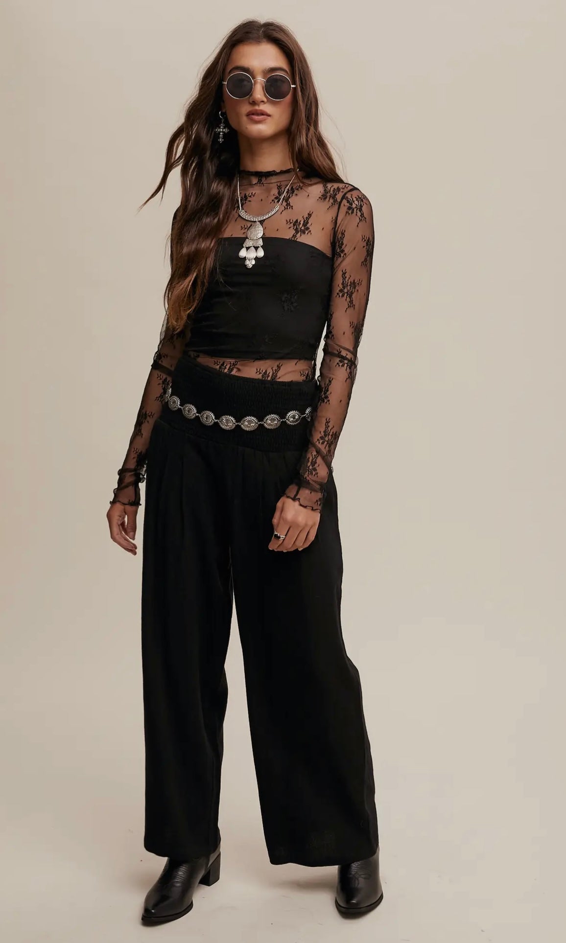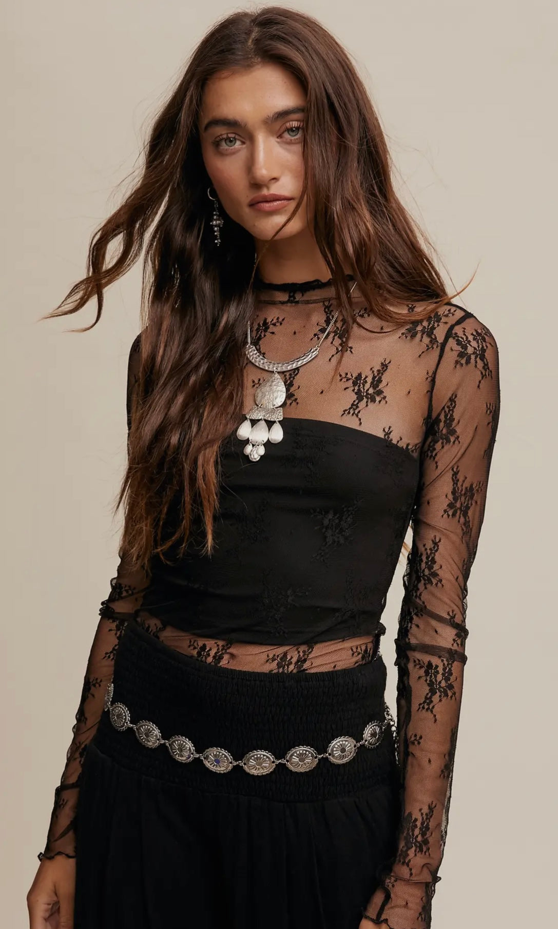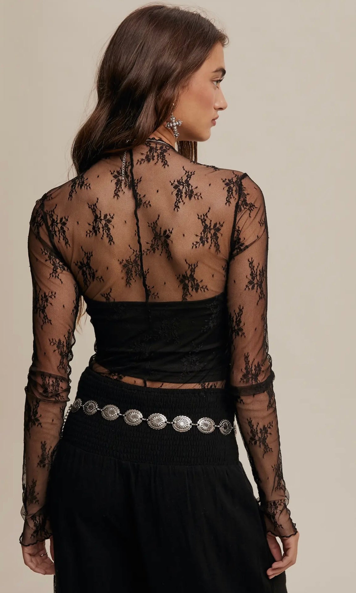 sheer black lace long sleeve top