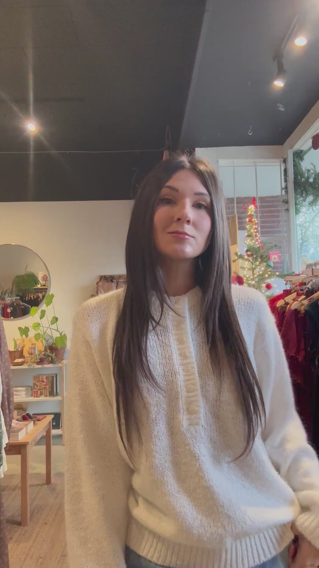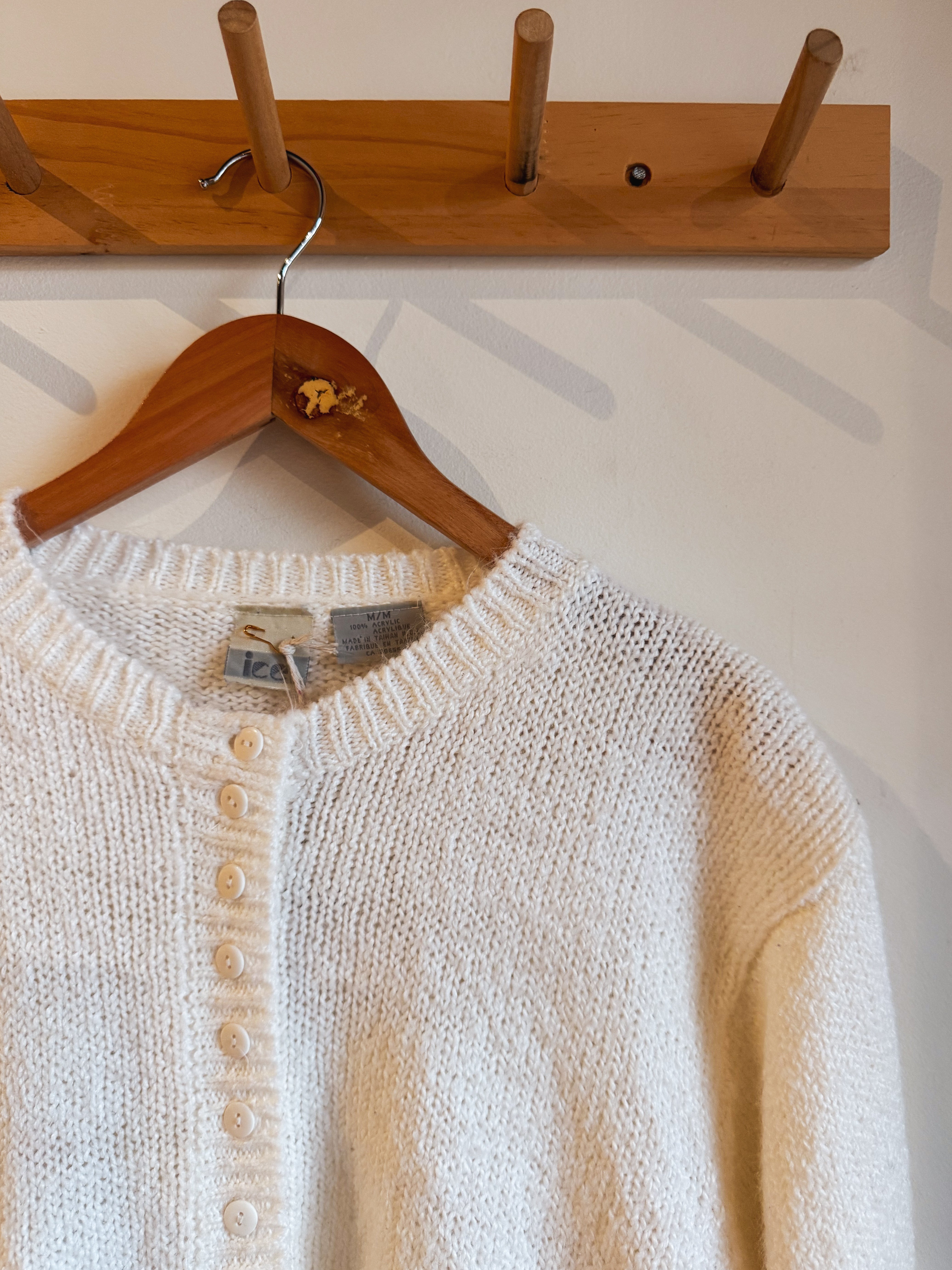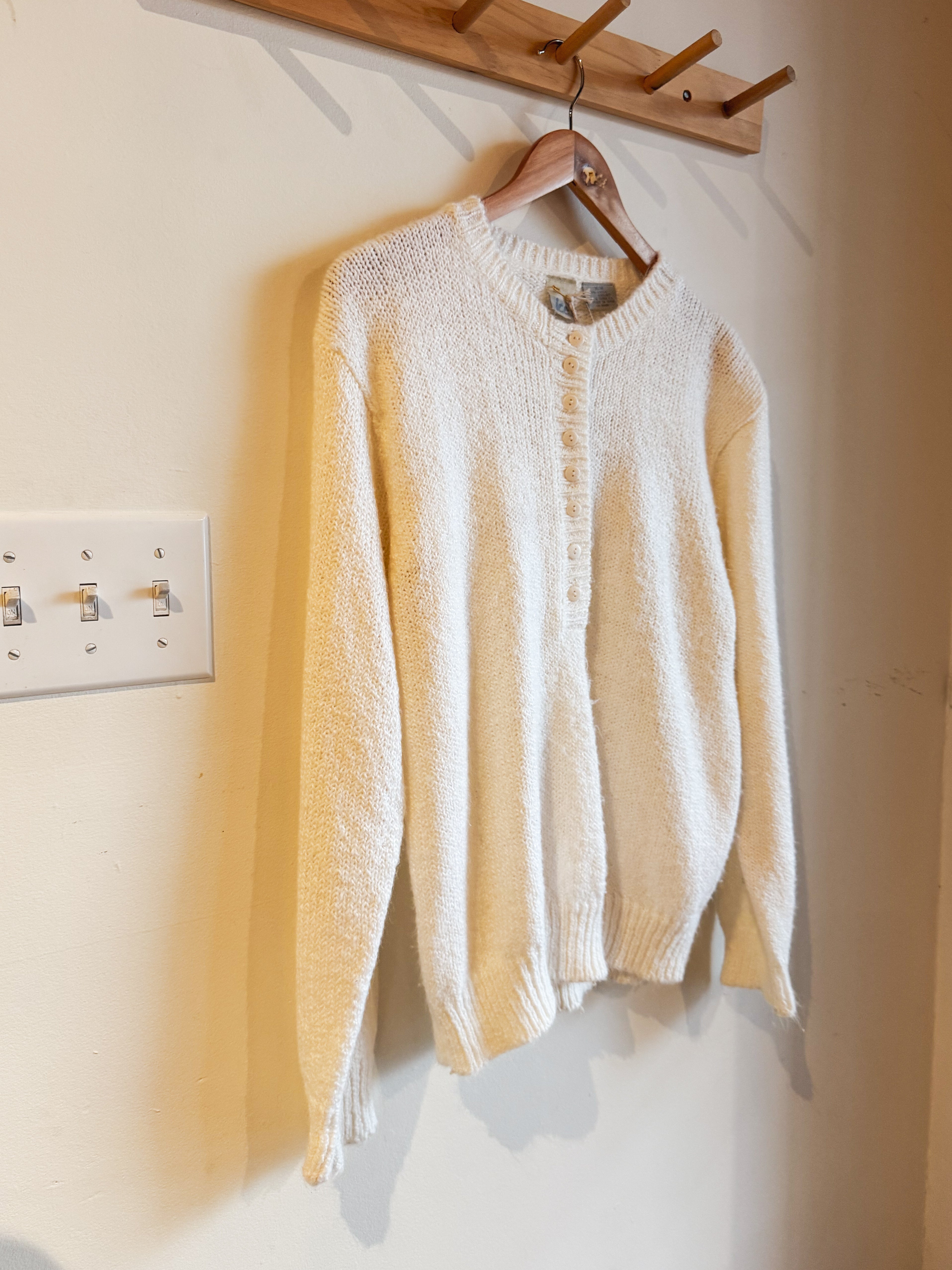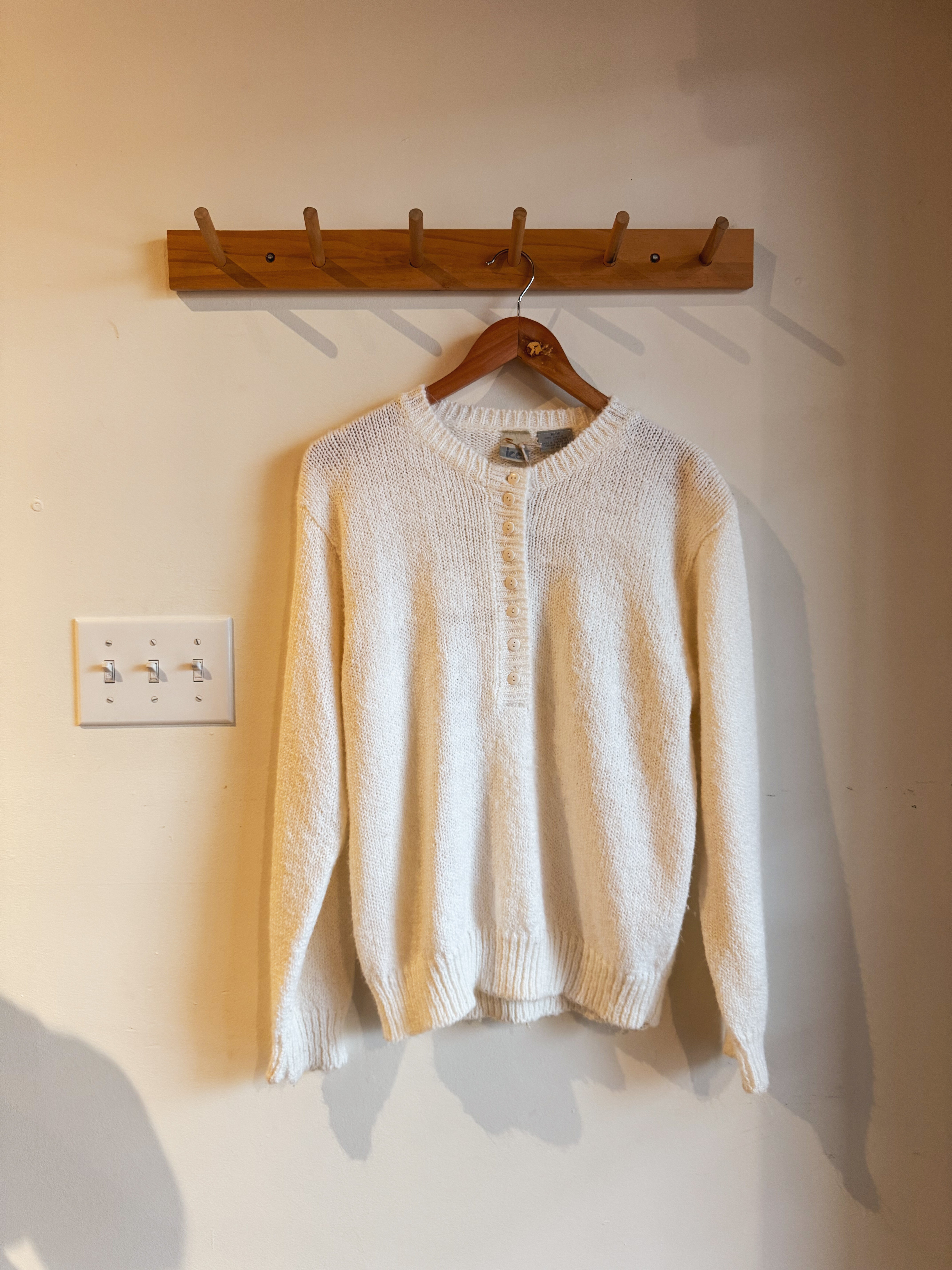 vintage cream half button sweater | M